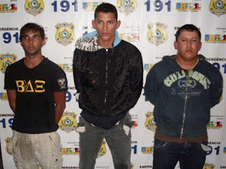 Agentes da Policia Rodoviária Federal (PRF) e da Polícia Militar prenderam ontem, três pessoas suspeitas de assalto a um posto de combustível no centro da cidade de Itabela. São eles: O estudante de direito da FTC Itabuna Solrac Rodrigues Vasconcelos, 20 anos, Caio Duarte Penha, 19, moradores de Porto Seguro, e Luciano Santos Dias, 23